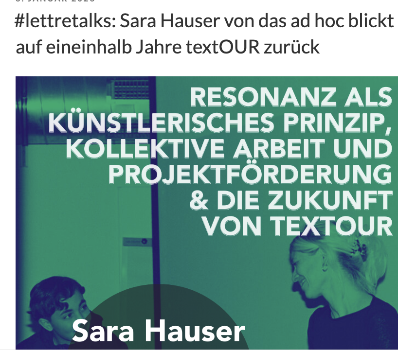 06/2021: Interview mit Sara Hauser zu Schüler:innen-Begleitung, sozialen Herausforderungen  und Kreativität  im Lockdown: Kontaktfläche sein. Sichtbar machend sein. https://literaturoutdoors.com/2021/06/27/kontaktflache-sein-sichtbarmachend-sein-sara-hauser-lyrikerin-literaturvermittlerin_berlin-25-7-2021/